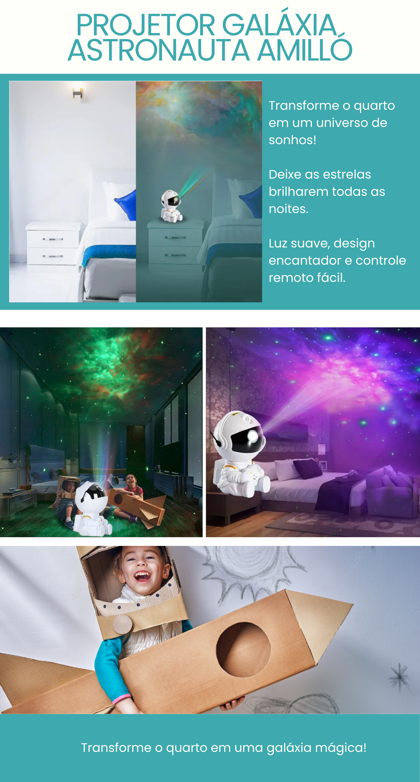 Transforme seu quarto ou sala com o Projetor Galáxia Astronauta Amilló!